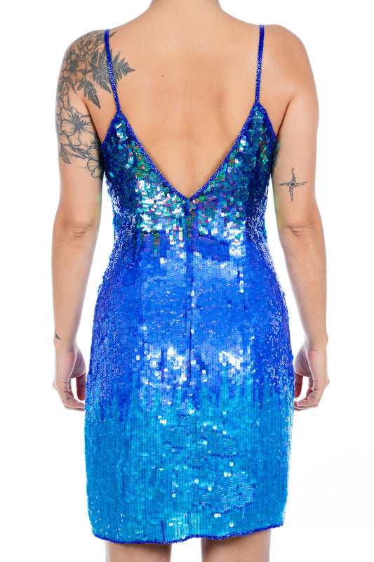 1980s Adrianna Papell Blue Sequin Dress