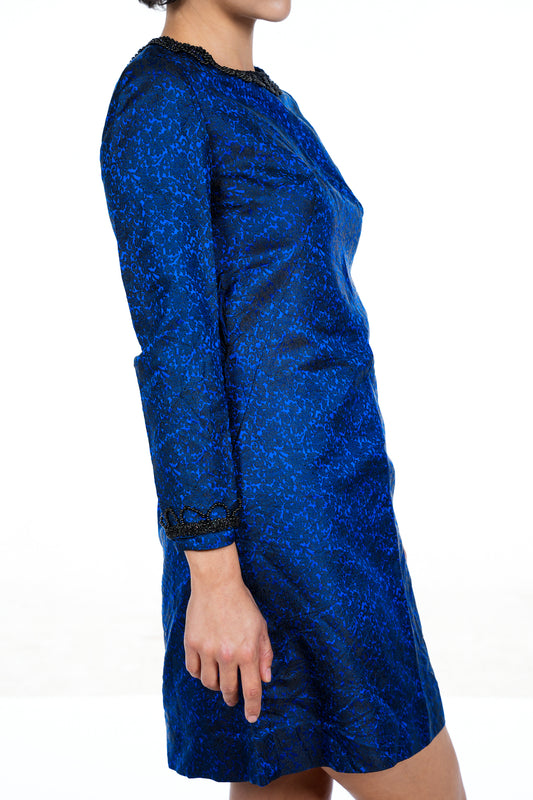 1960s Blue and Black Beaded Dress