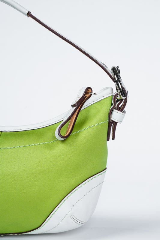 Vintage Y2K Coach 1877 Green Sateen & Leather Soho Shoulder Bag