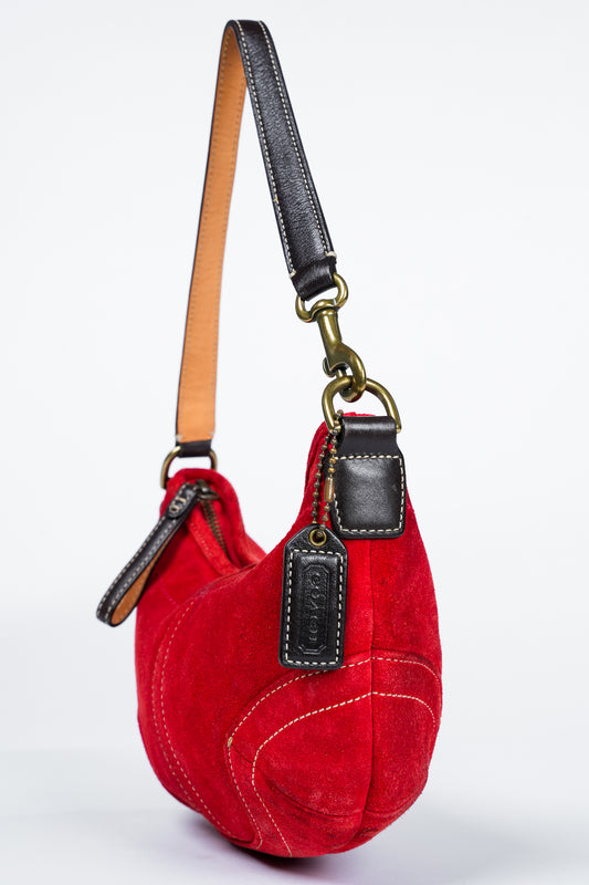 Vintage Y2K Coach 4284 Red Suede Soho Hobo Shoulder Bag
