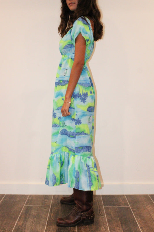 1960s Sky Blue Island Print MuʻumuʻuRegular price $118.00 USDRegular priceUnit price / per-