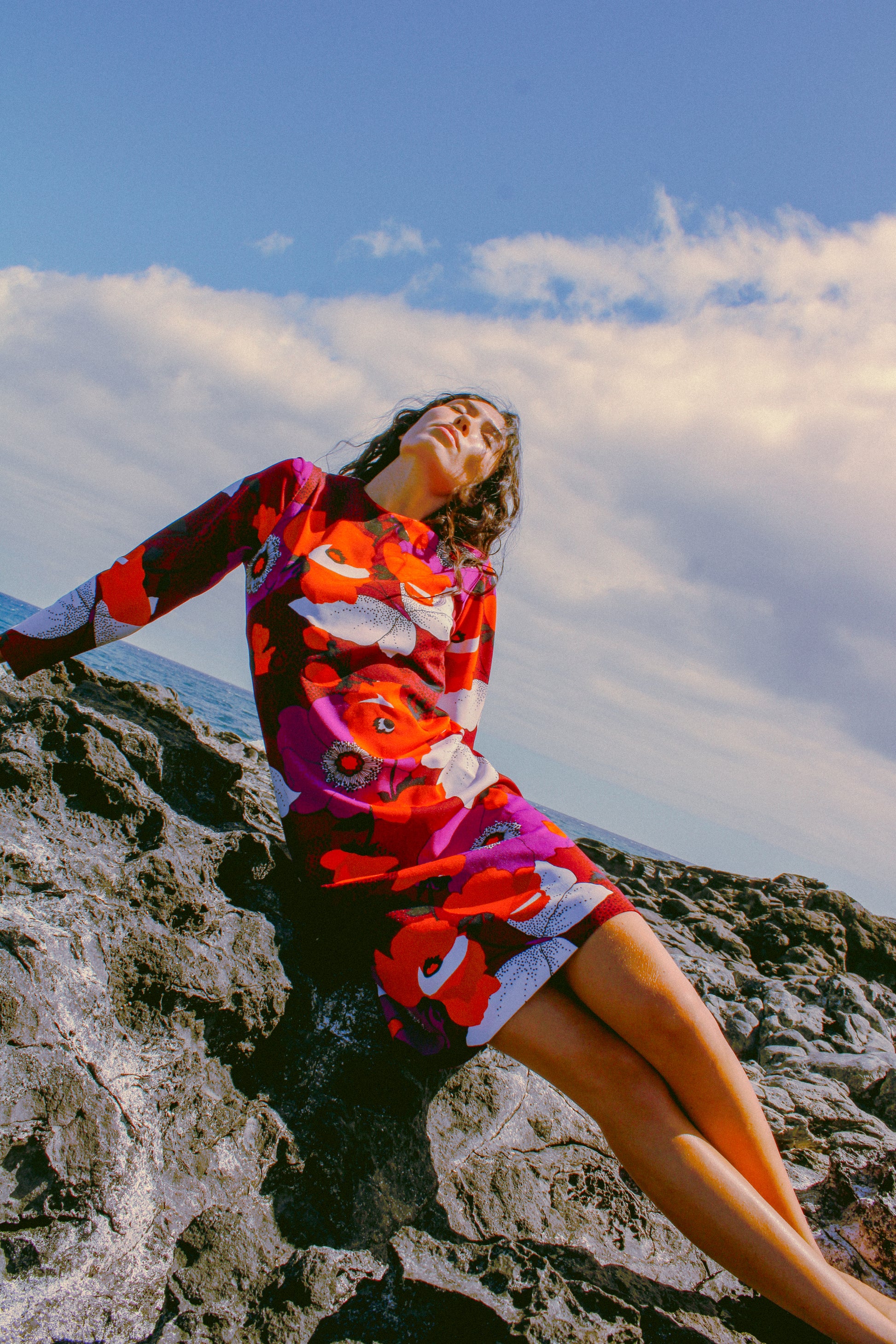 Embody vintage charm with this 1960s long sleeve floral dress in vibrant orange and burgundy. Its flattering short length and classic floral pattern make it perfect for standout style with a retro twist. Handmade, no tag.