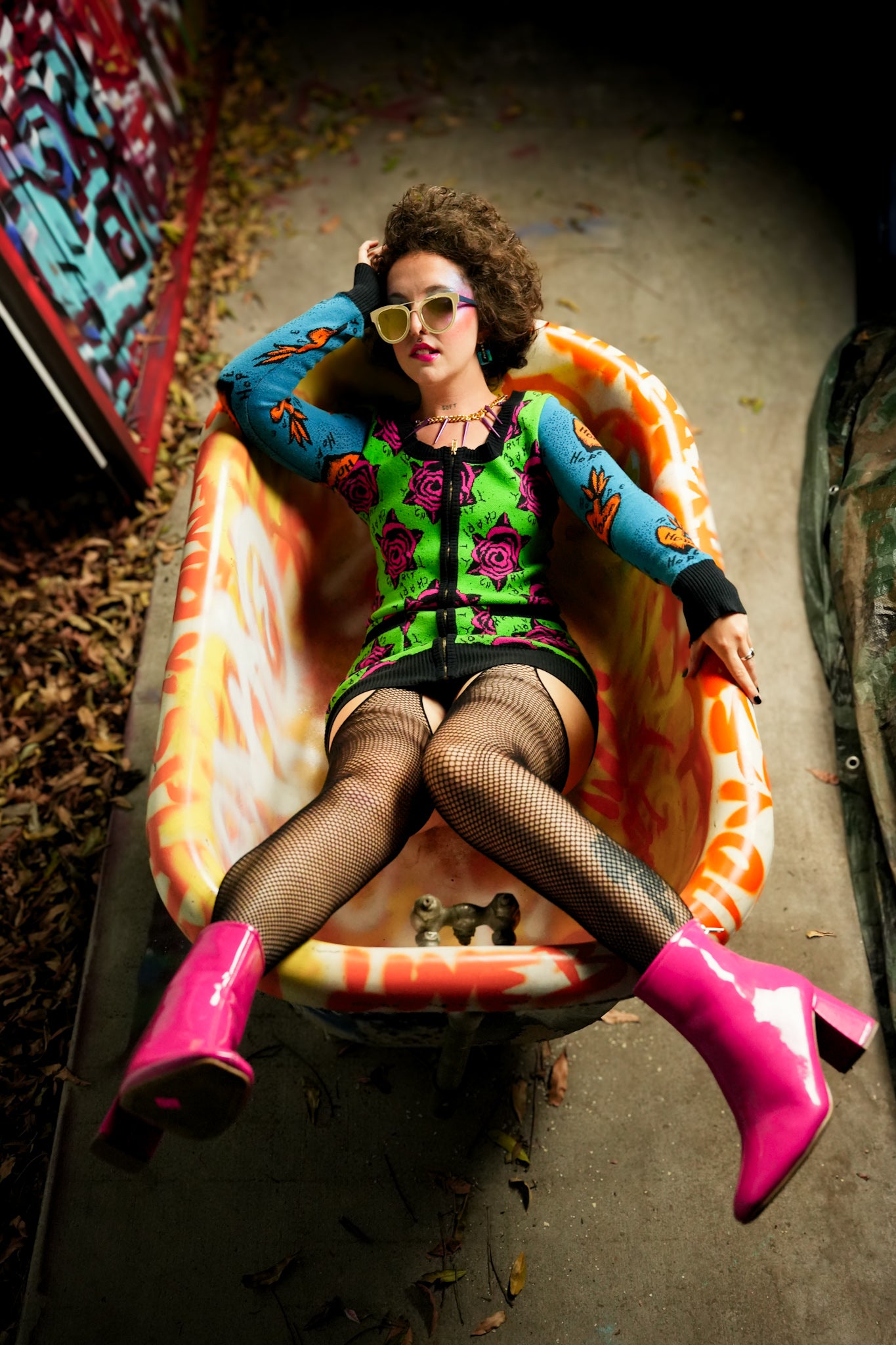 Celebrate bold 80’s fashion with this vintage Betsey Johnson multicolor zip-up cardigan dress, featuring the inspiring words "Charity, Hope, Faith." With two front pockets, it’s the perfect mix of quirky style and cheeky functionality.
