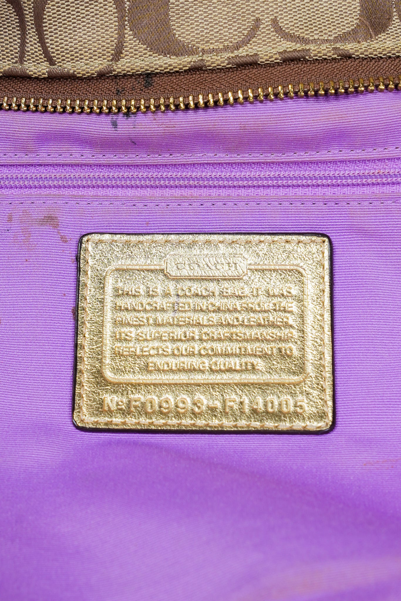 Add some Y2K vibes to your wardrobe with the Coach Carly Gold Patchwork Shoulder Bag, style F14005. The playful exterior patchwork design is sure to make a statement, while the spacious purple interior and sturdy shoulder strap provide comfort and convenience. Perfect for any Y2K vintage lover!