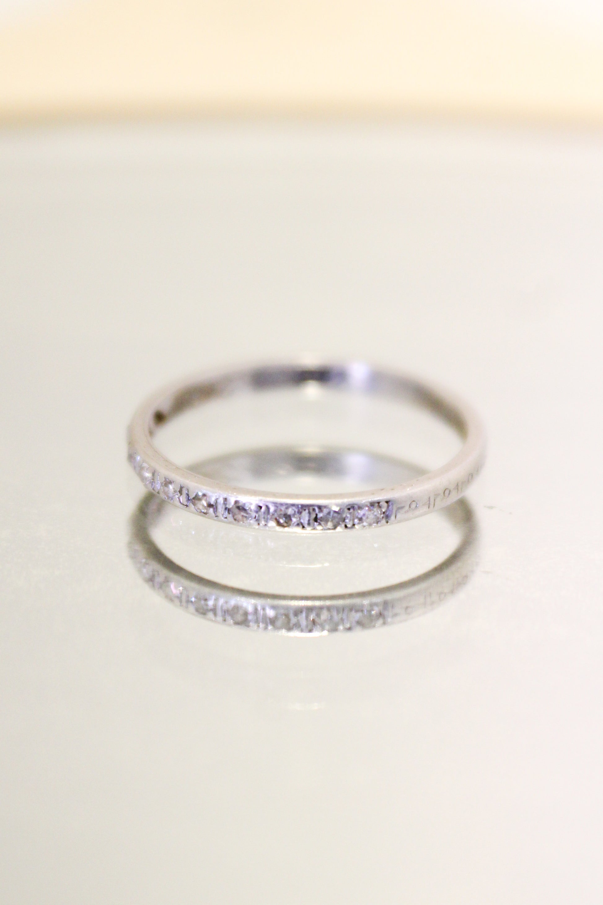 Authentic and beautifully worn 10 stone diamond band, engraved "3-21-26".