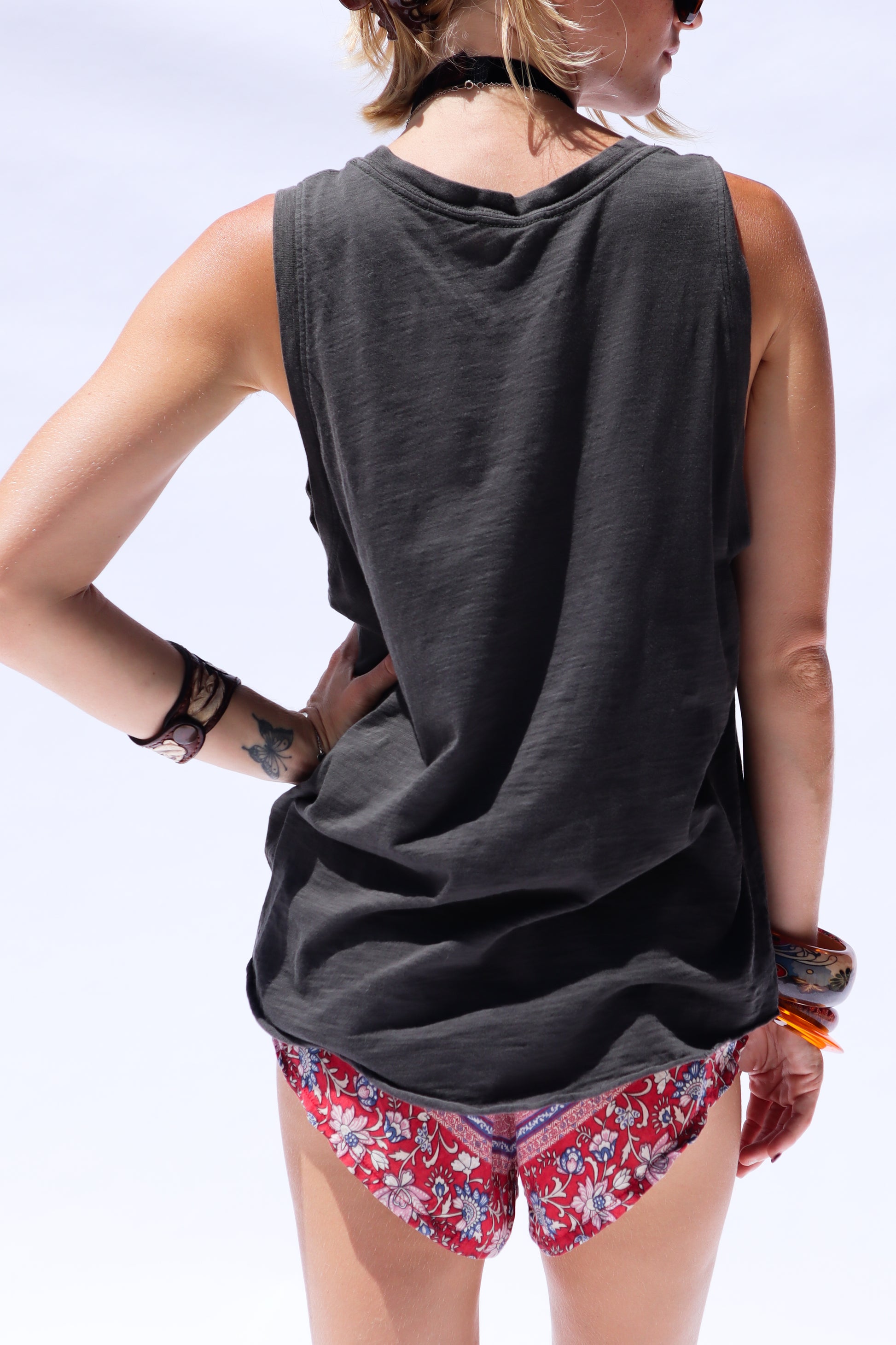 Iconic Classic rock tank with a hand-drawn graphic print on front. Buttery soft fabric, is light and breathable cotton draping perfectly over your shoulders with a vintage, faded finish. Pair with your favorite denim jeans or shorts for an effortlessly cool look. Well worn, Fits true to size. Model is an XS for reference.