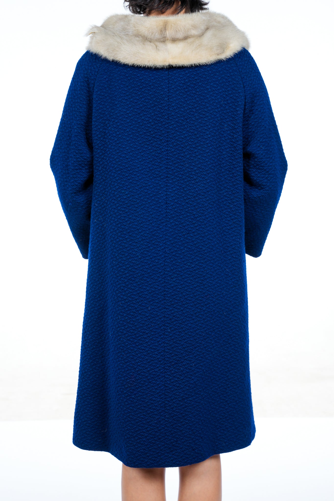 1960s Navy Blue Fur Collar Trench Coat