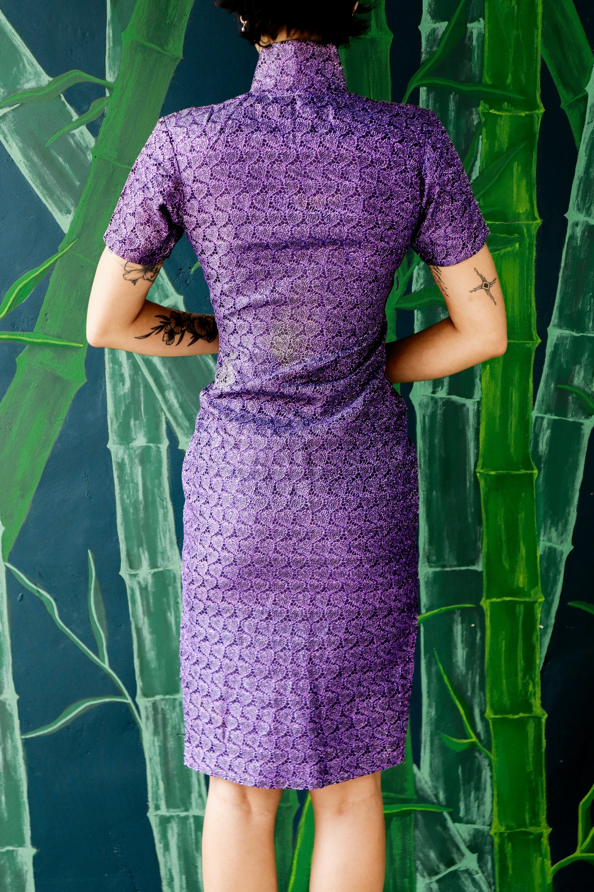 Exude elegance with a twist of romance in this purple heart shimmer Qipao dress. The delicate heart-shaped shimmer and rich hue make it a striking blend of tradition and modern flair!
