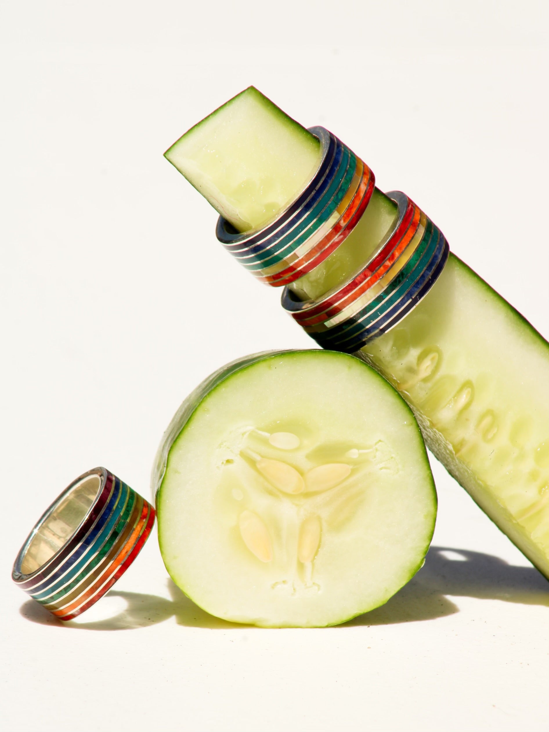 Adorn yourself and your lovers in these exquisite & bold rainbow gemstone bands! Handmade with the highest quality sterling silver by Peruvian artists.