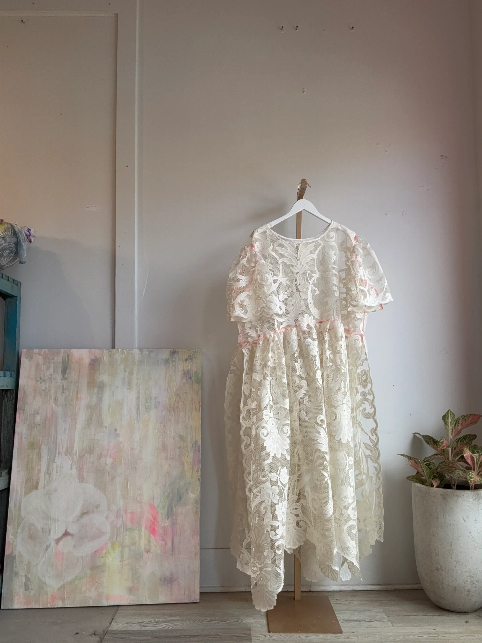 Handmade up-cycled dress made from vintage curtains. This dress features dramatic bell sleeves, with an oversized silhouette and slits up the sides.