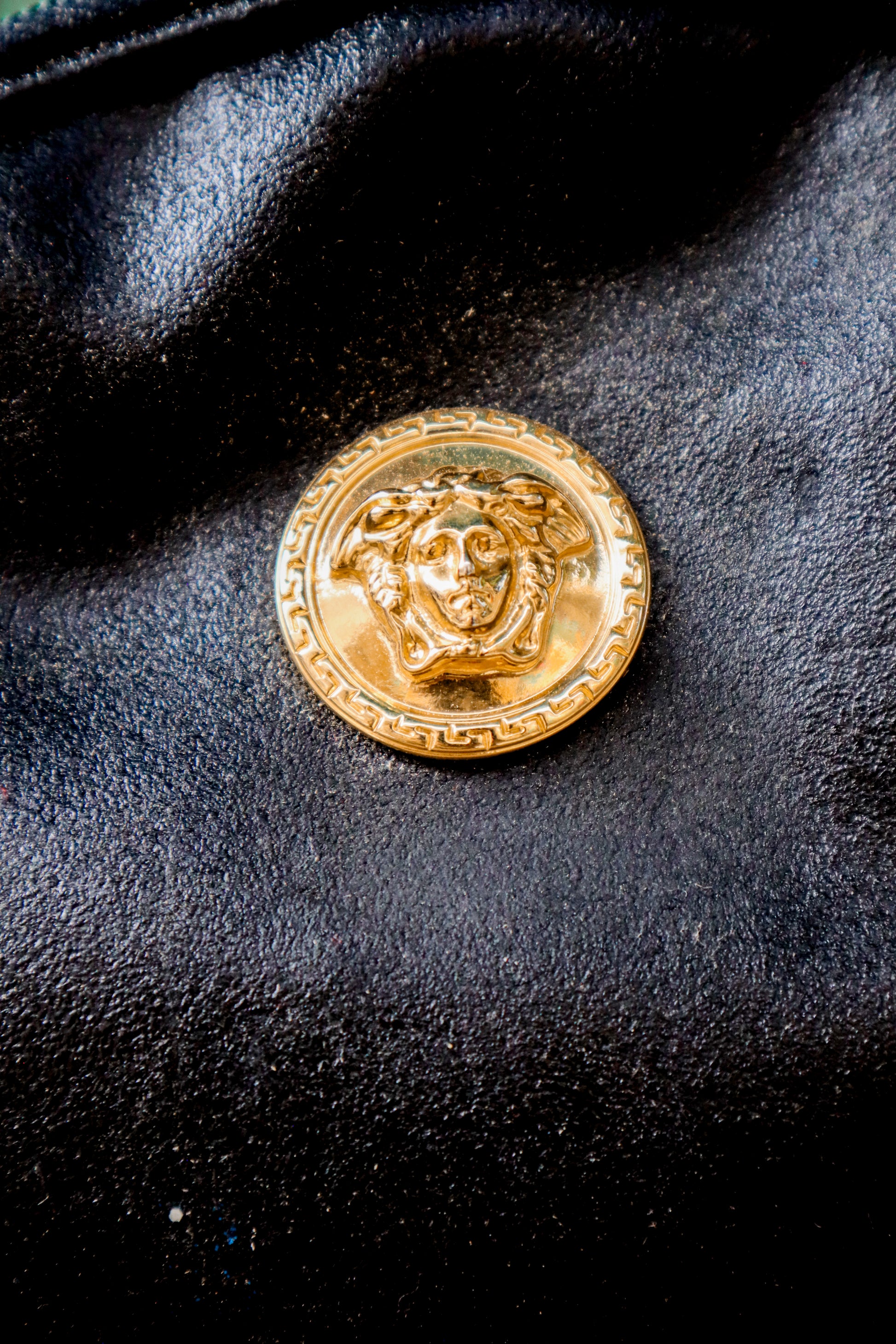 Step out in style with the Vintage Leather Versace Circle Bag, a playful twist on classic luxury. Its smooth leather and iconic round design make it the perfect companion for your adventures, adding a dash of retro flair to any outfit. Small but mighty, this bag keeps your essentials close while turning heads with every step. Embrace fun fashion with a timeless edge!